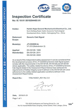 獲得JT-CZ2000-kj型機車信號車載系統(tǒng)軟件和系統(tǒng)集成CRCC鐵路產品認證證書