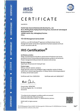 IRIS(國際鐵路行業(yè)標準)認證證書