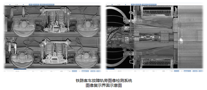 該系統(tǒng)是鐵路車(chē)輛運(yùn)行安全監(jiān)控系統(tǒng)的重要組成部分,利用軌旁安裝的高速相機(jī),檢測(cè)運(yùn)行客車(chē)走行部、轉(zhuǎn)向架、制動(dòng)部件、車(chē)端連接及車(chē)體下部懸吊件等可視部位圖像,實(shí)時(shí)傳輸至室內(nèi)監(jiān)測(cè)終端進(jìn)行分析,并利用人工檢測(cè)發(fā)現(xiàn)運(yùn)行車(chē)輛異常情況并報(bào)警。